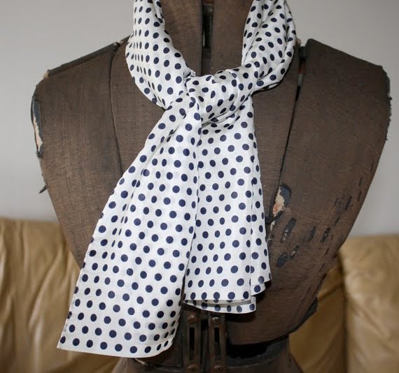Vintage 1960s Navy Blue and White Polka Dot Long Sleeved Dress from